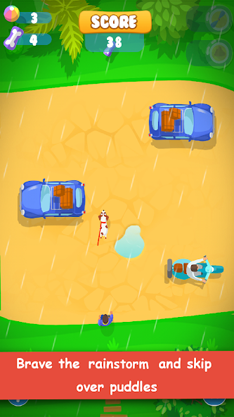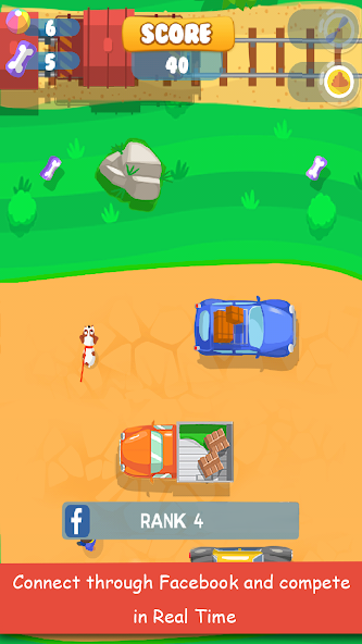 Corra ao longo de um caminho sem fim, repleto de carros em alta velocidade, caminhões monstruosos, carrinhos de boi e vacas em roaming, cronometrando o sprint para evitar o trem e o bulldog irritado esperando para sair da emboscada. Colete bolas e ossos ao longo do caminho e use power-ups emocionantes e convocem o helicóptero para voar para fora de um local apertado.